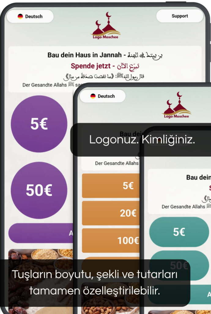 Etkinlikler, cuma namazı veya özel kampanyalar sırasında esnek bağış toplama için idealdir.